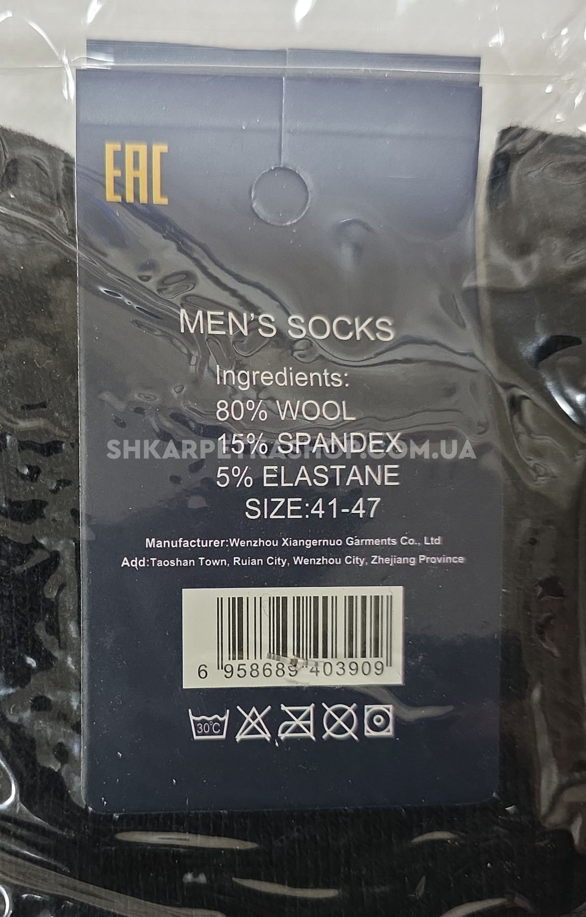 Шкарпетки "MYBKO" А-7116-1 вовняні чоловічі, р. 41-46 -(чорні /однотонні) -уп. 10 шт