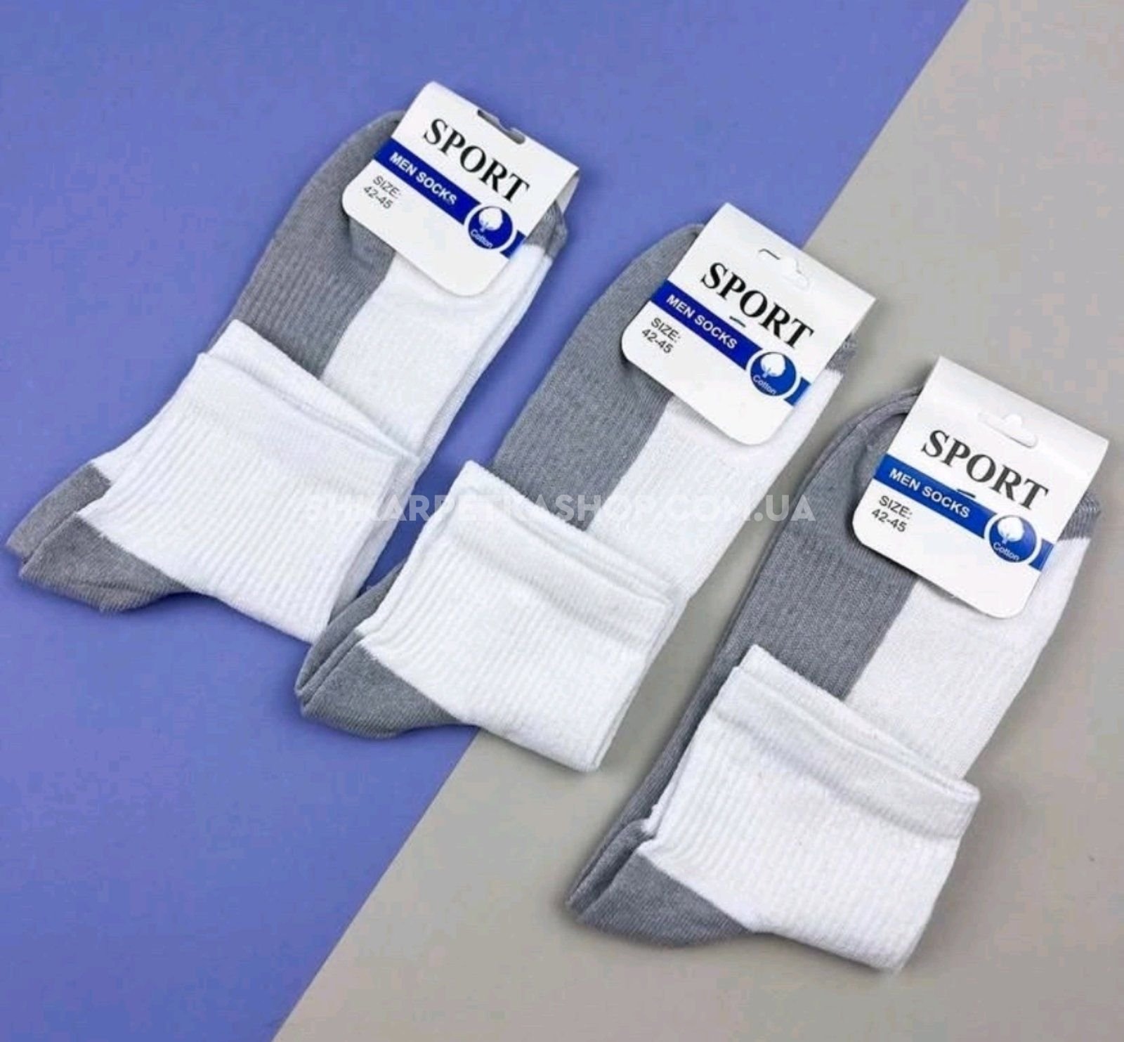 Шкарпетки "Nice" 704-1 стрейч чоловічі, р. 42-45 -(Середні /Білі +із сірою підошвою +гумка в рубчик -чол.) -уп. 10 шт