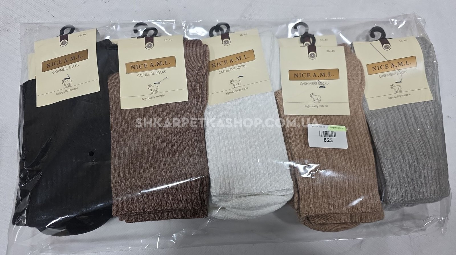 Шкарпетки "NICE A.M.L." 823 кашемірові напівмахрові/ махровий слід жіночі, р. 36-40 -асорті -(Кашемір високі +махрова підошва /стопа -однотонні з високою високою гумкою в рубчик) -уп. 10 шт