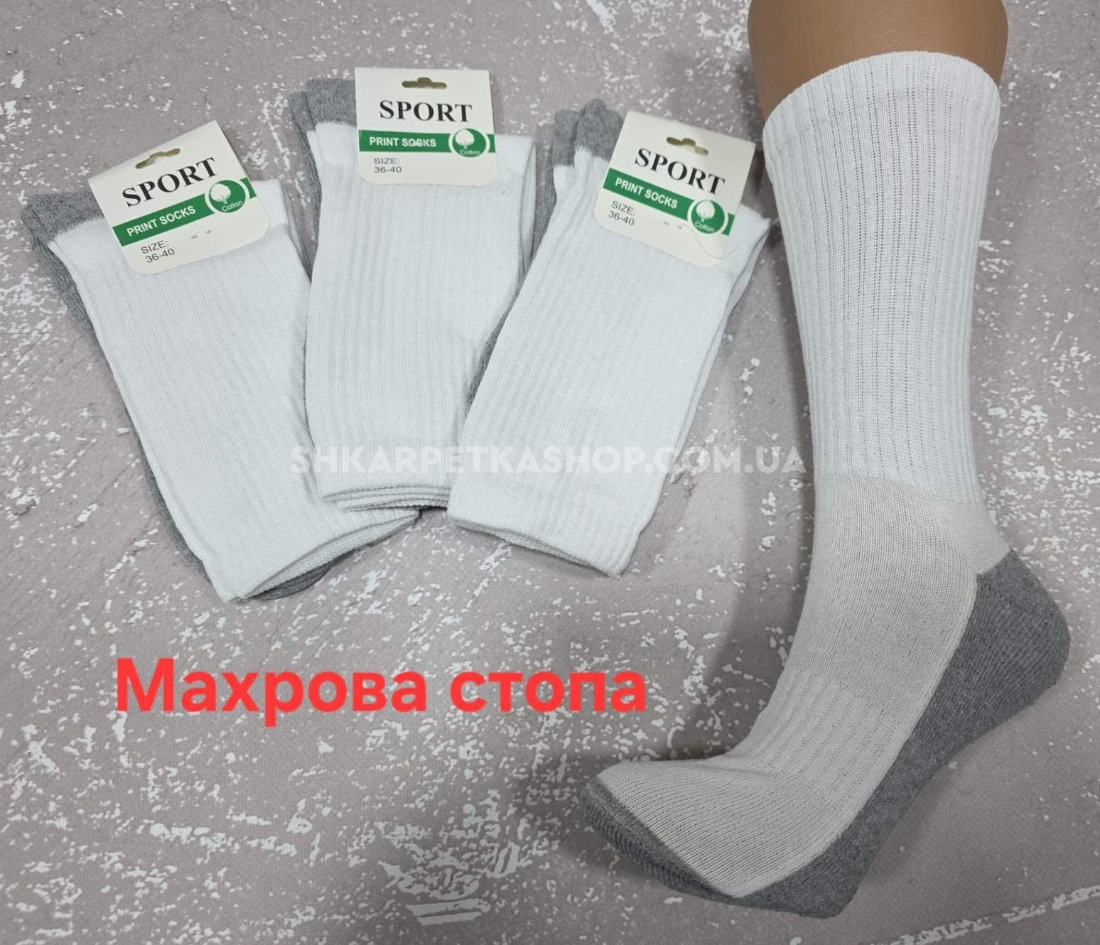 Шкарпетки "Nice-Sport" 523-1 напівмахрові/ махрова підошва жіночі, р. 36-40 -(Високі -білі з сірою махровою стопою +гумка в рельєфний рубчик) -уп. 12 шт