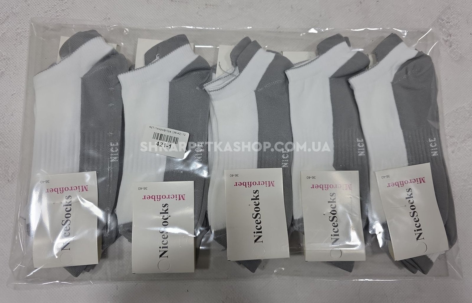 Шкарпетки "NiceSocks" 421-1-СН мікрофібра жіночі, р. 36-40 -асорті -(Короткі -з сірою підошвою та білим верхом +з сірім виступом /язичком ззаду +посередині гумка фіксатор) -уп. 10 шт
