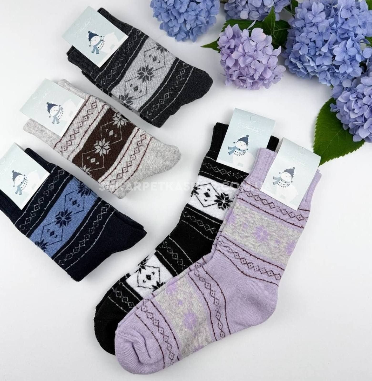 Шкарпетки "NiceSocks" 502-2 махрові жіночі, р. 36-40 -асорті -(Махра -орнамент із середніми сніжинками та різними ромбами) -уп. 10 шт