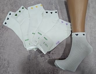 Шкарпетки "NiceSocks" К-408 стрейч /бавовна жіночі, р. 36-40 -(Короткі /молочніі в рубчик +на резинці по колу маленькі кольорові серця -стрейч) -уп. 10 шт