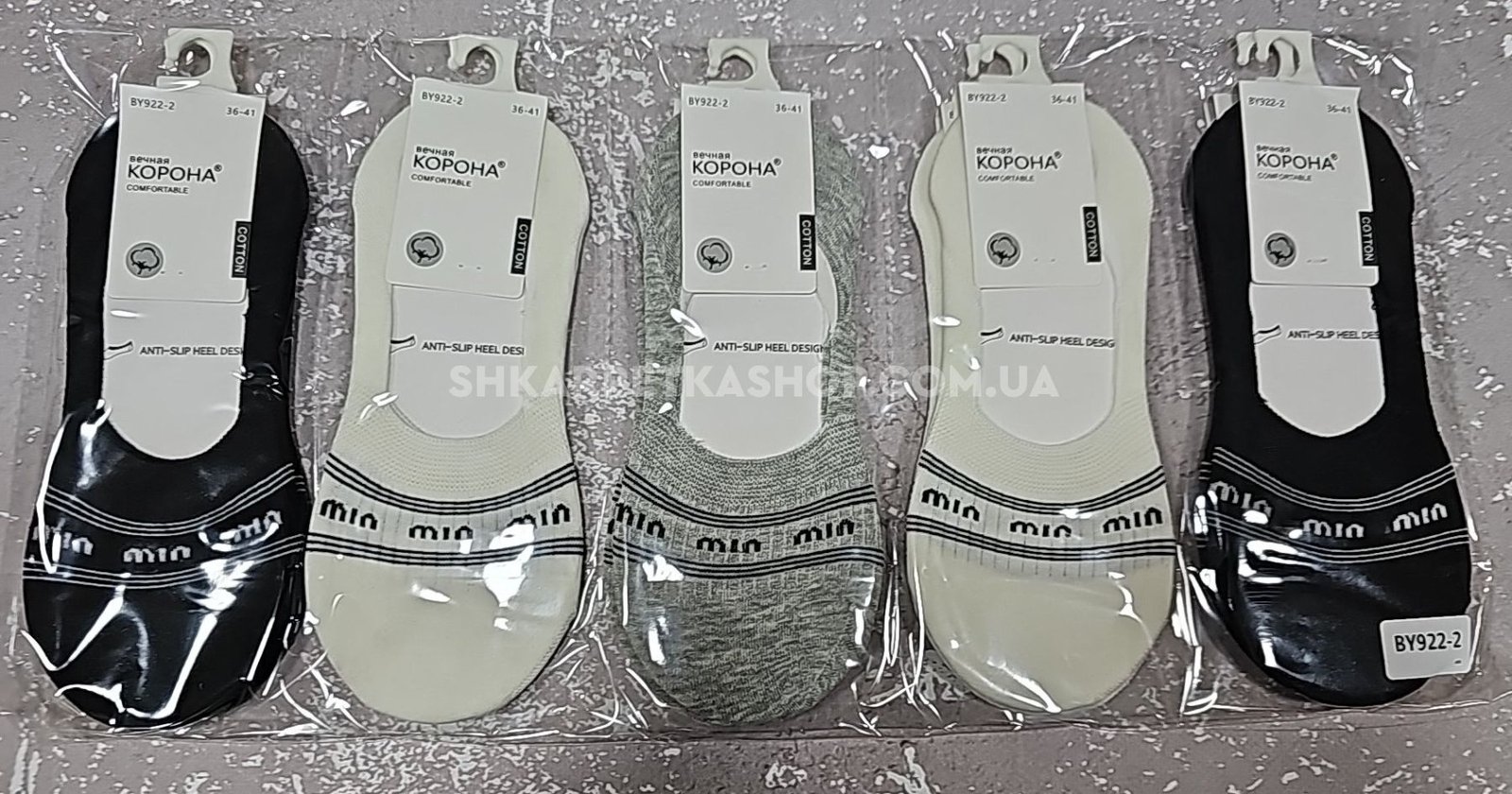 Шкарпетки-сліди "Корона" BY-922-2 стрейч жіночі із силіконом на п'яті, р. 36-41 -асорті -(однотонні /три кольори +спереду між смугами написи min...min)-уп. 10 шт