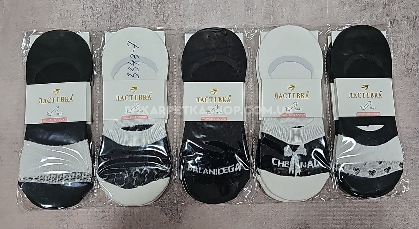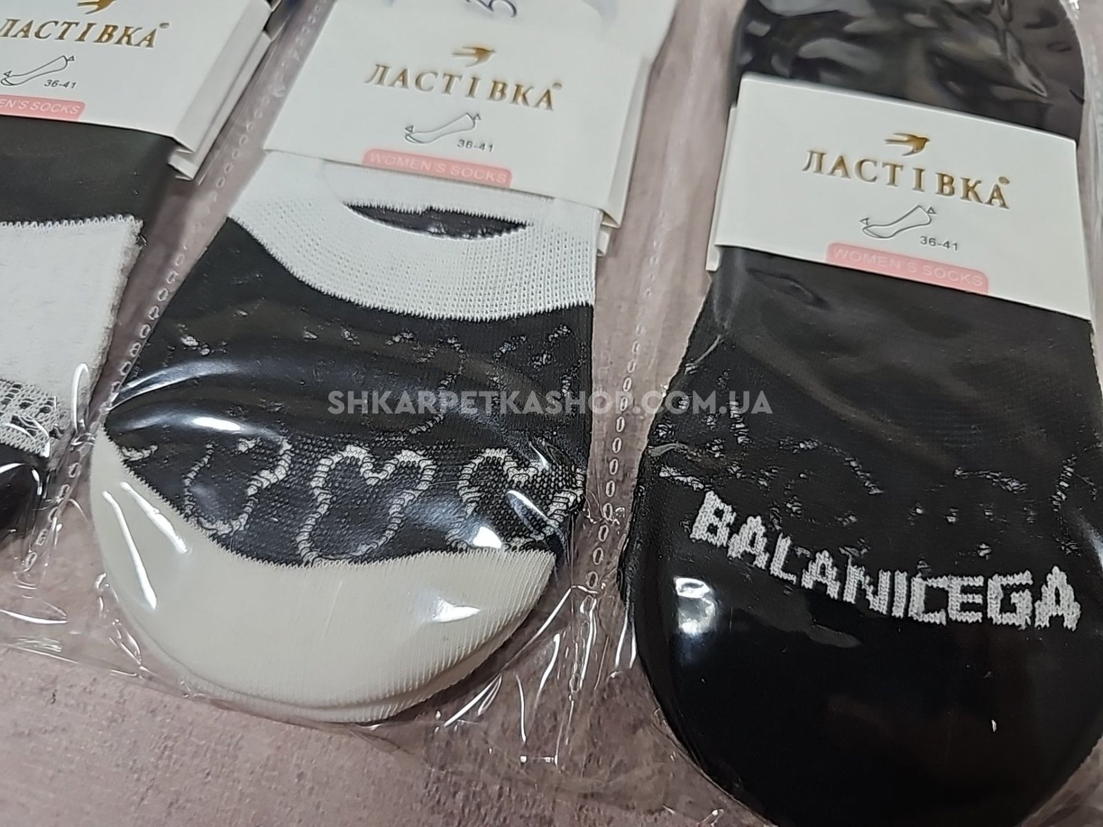 Шкарпетки-сліди "Ластівка" С-3343-7 стрейч +спереду сіточка та із силіконом на п'яті жіночі, р. 36-41 -асорті -(Чорно-білі з мікс візерунками та написами) -уп. 10 шт