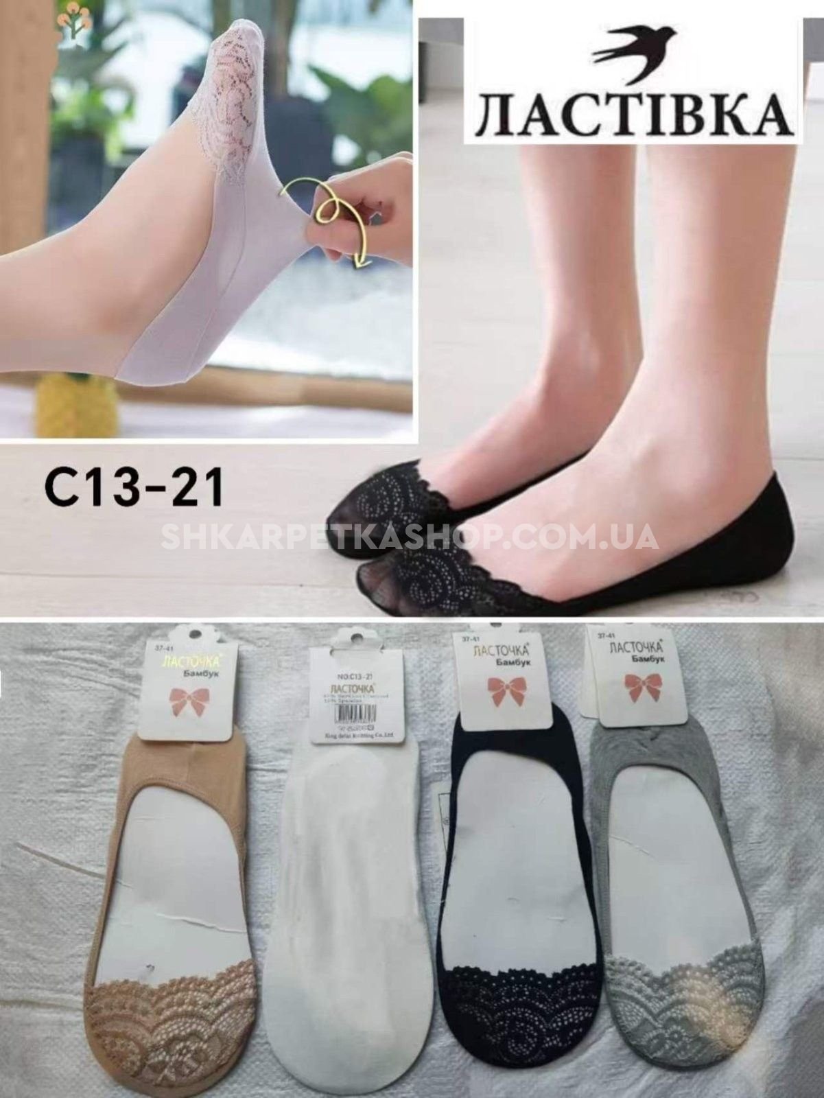Шкарпетки-сліди "Ласточка" С13-21 підслідники cotton +бамбук жіночі р. 37-41 -асорті -(однотонні +спереду мереживо) -уп -12 пар