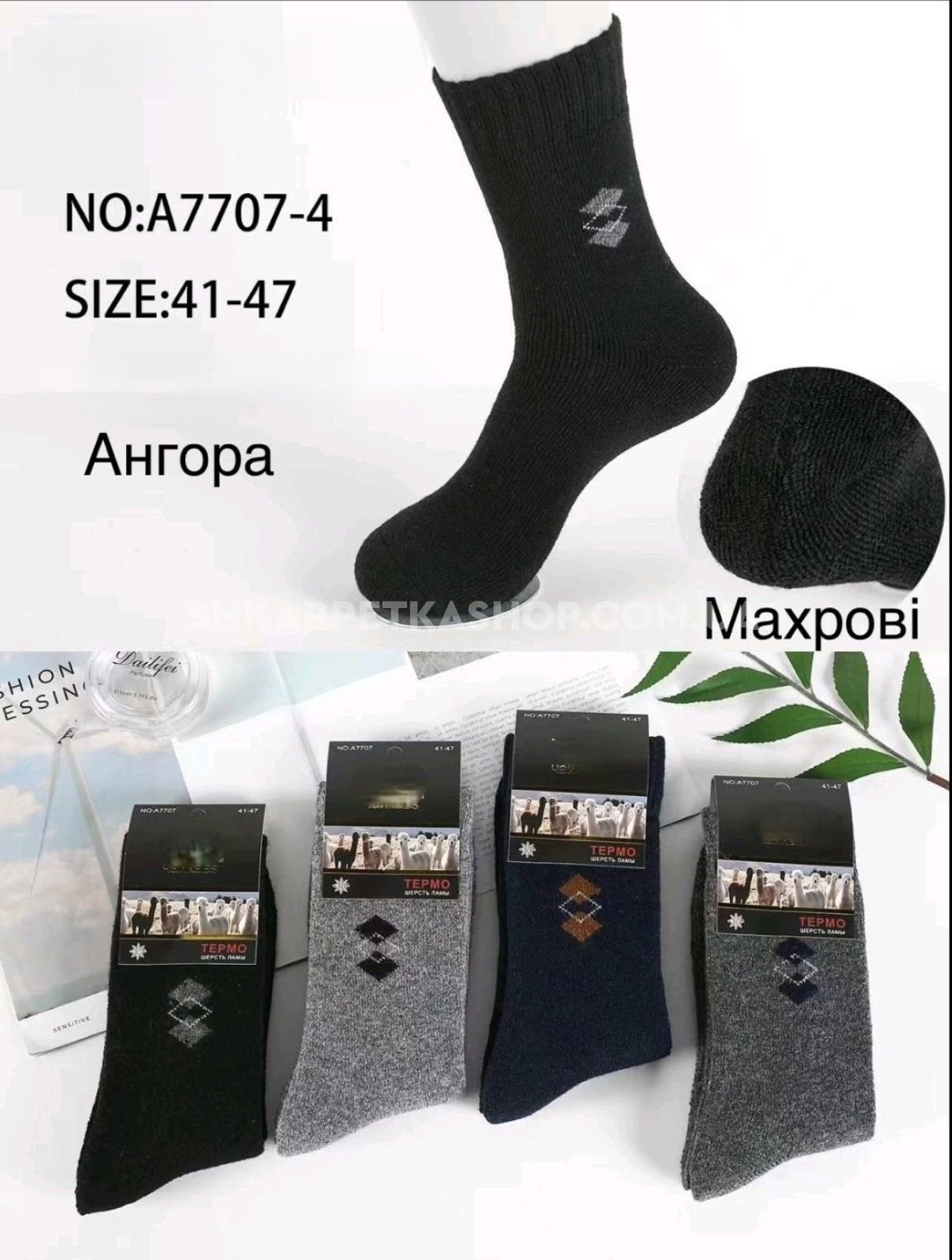 Шкарпетки "Tafinceva" A-7707-4 термо вовна лами чоловічі, р. 41-47 -(Високі /однотонні +збоку ромбики) - уп. 10 шт