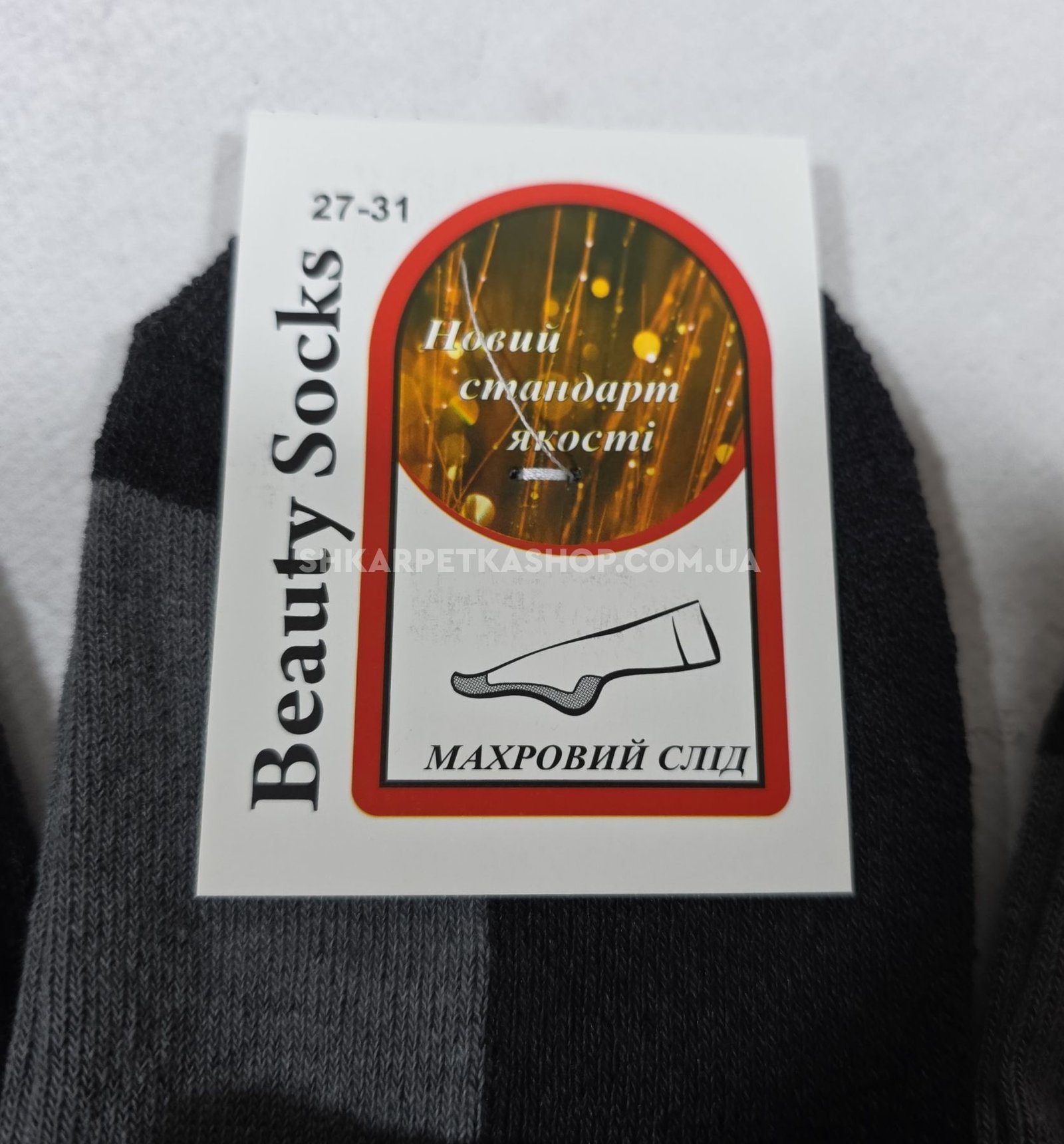 Шкарпетки Житомир "Beauty Socks-Красота" 44-33 напівмахрові/ махровий слід чоловічі, р. 27-31 -(махрова стопа / середні -сірий верх +чорний низ +гумка в рубчик) -уп. 12 шт