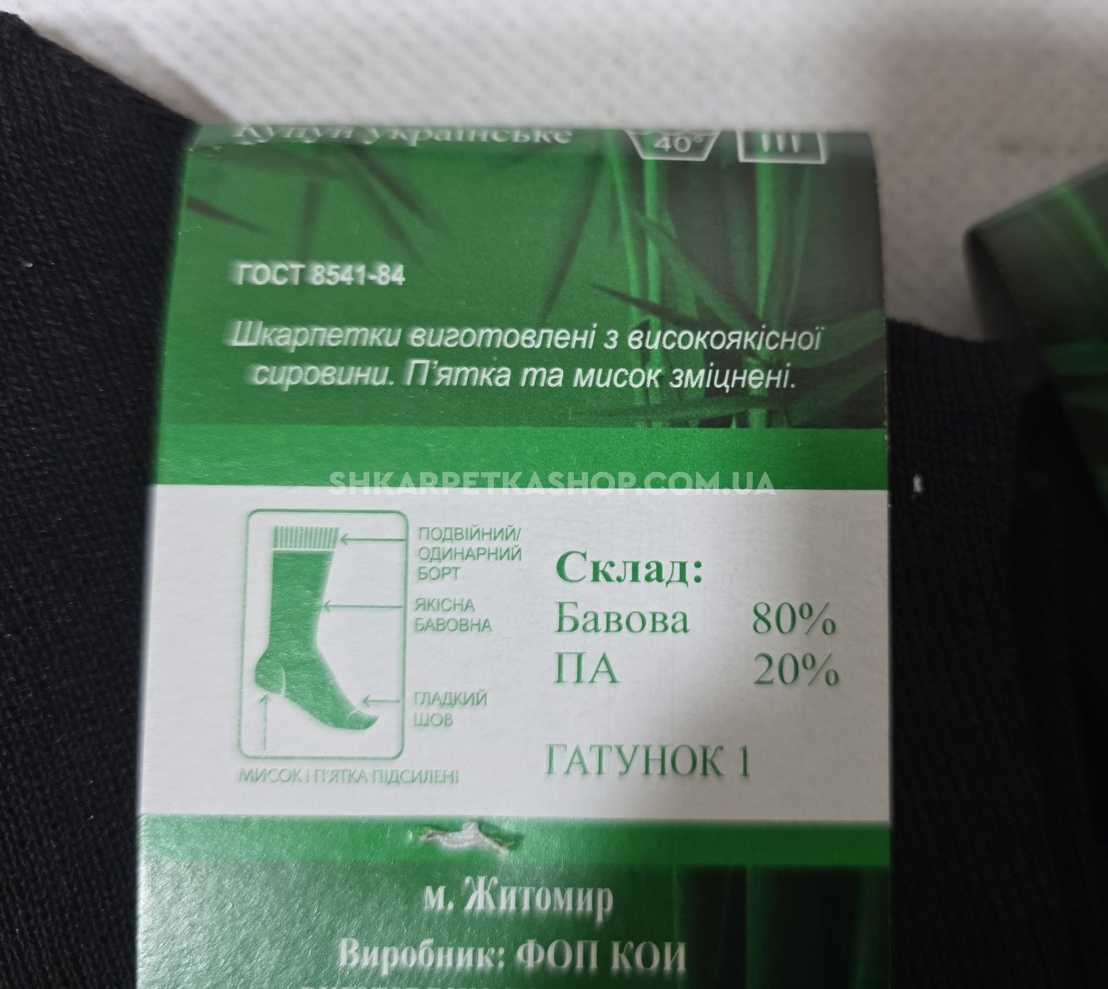 Шкарпетки Житомир "КОІ -Х/Б -Україна" 073-3 Х/Б - бавовняні чоловічі р. 25, 27, 29 -(чорні -х/б -коі) -уп.12 шт.
