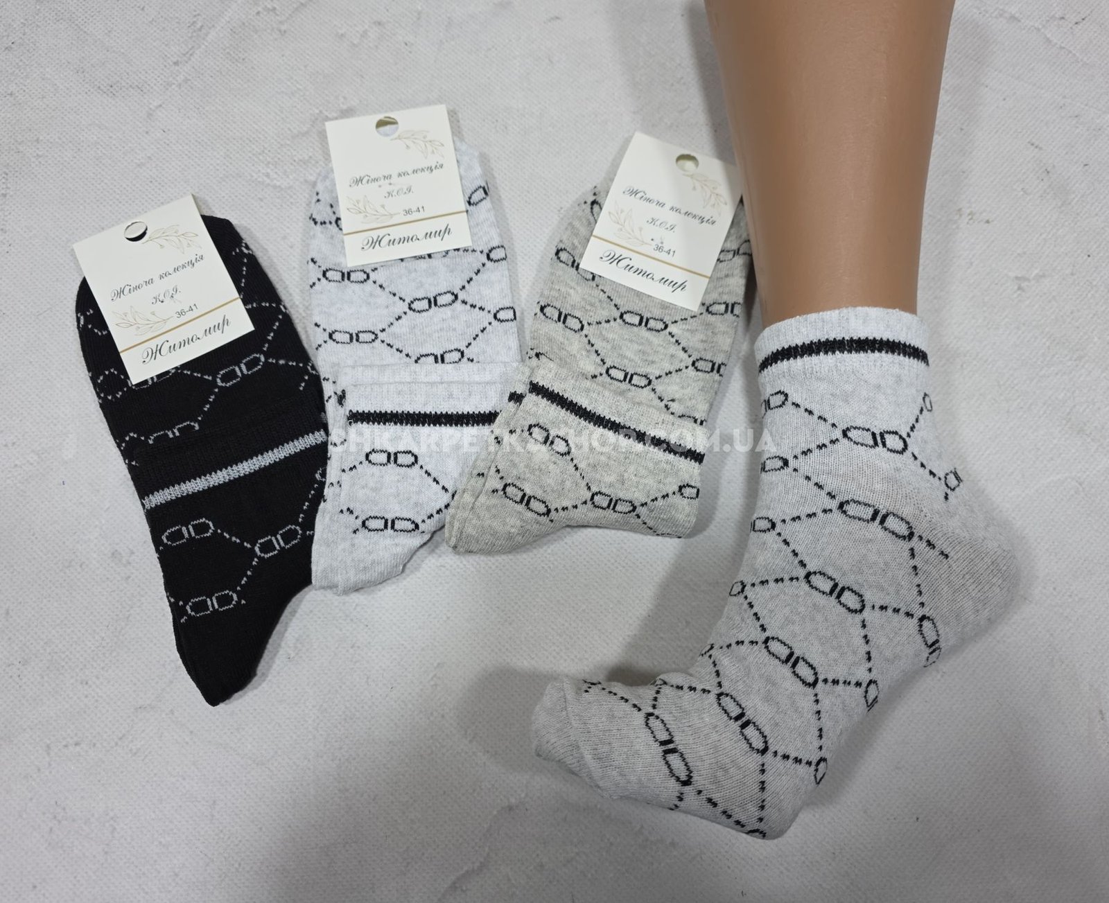 Шкарпетки Житомир "КОІ-Жіноча колекція" 121-21 стрейч жіночі, р. 36-41 -асорті -(Укорочені з візерунком з пунктирів і кружечків по всій шкарпетці) -уп. 12 шт
