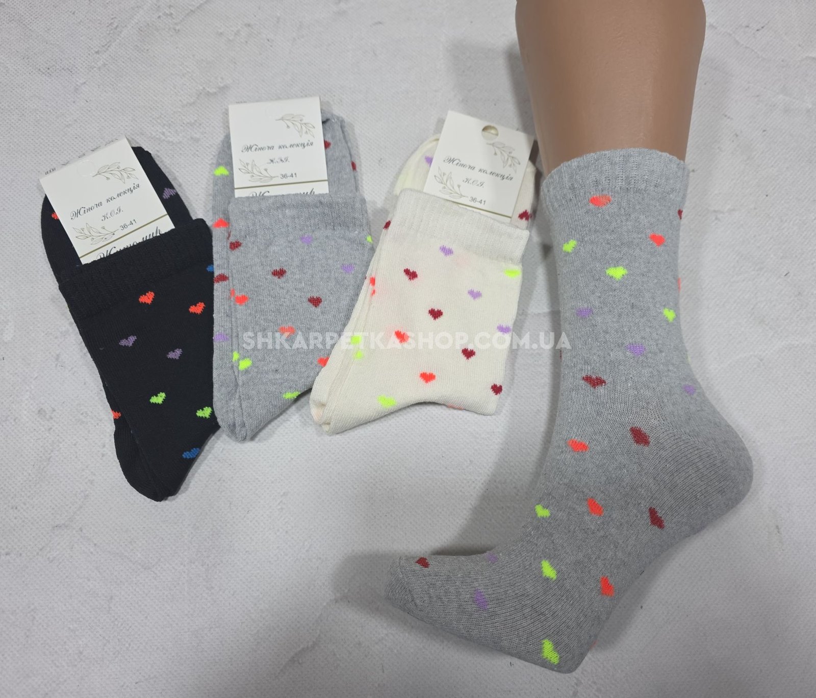 Шкарпетки Житомир "КОІ-Жіноча колекція" 122-45 стрейч жіночі, р. 36-41 -асорті -(Високі /однотонні +у дрібні кольорові серця по всій шкарпетці) -уп. 12 шт
