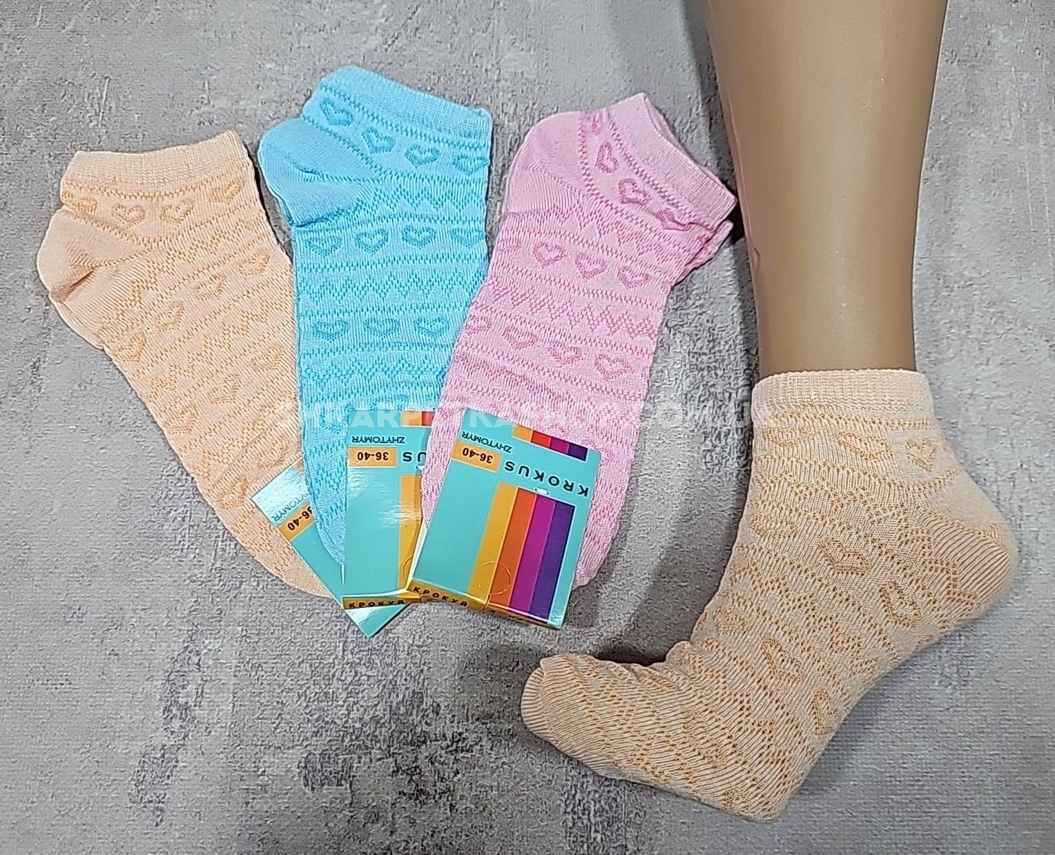 Шкарпетки Житомир "Krokus" 08-16 сітка -економ "короткі" жіночі, р. 36-40 -випадкове асорті -(сіточка +візерунок із сердечками /короткі -економ) -уп. 12 шт