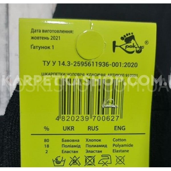 Шкарпетки Житомир "КРОКУС" 2260-1 махрові підліткові, р. 34-36 -(Чорні /підліток -махра)