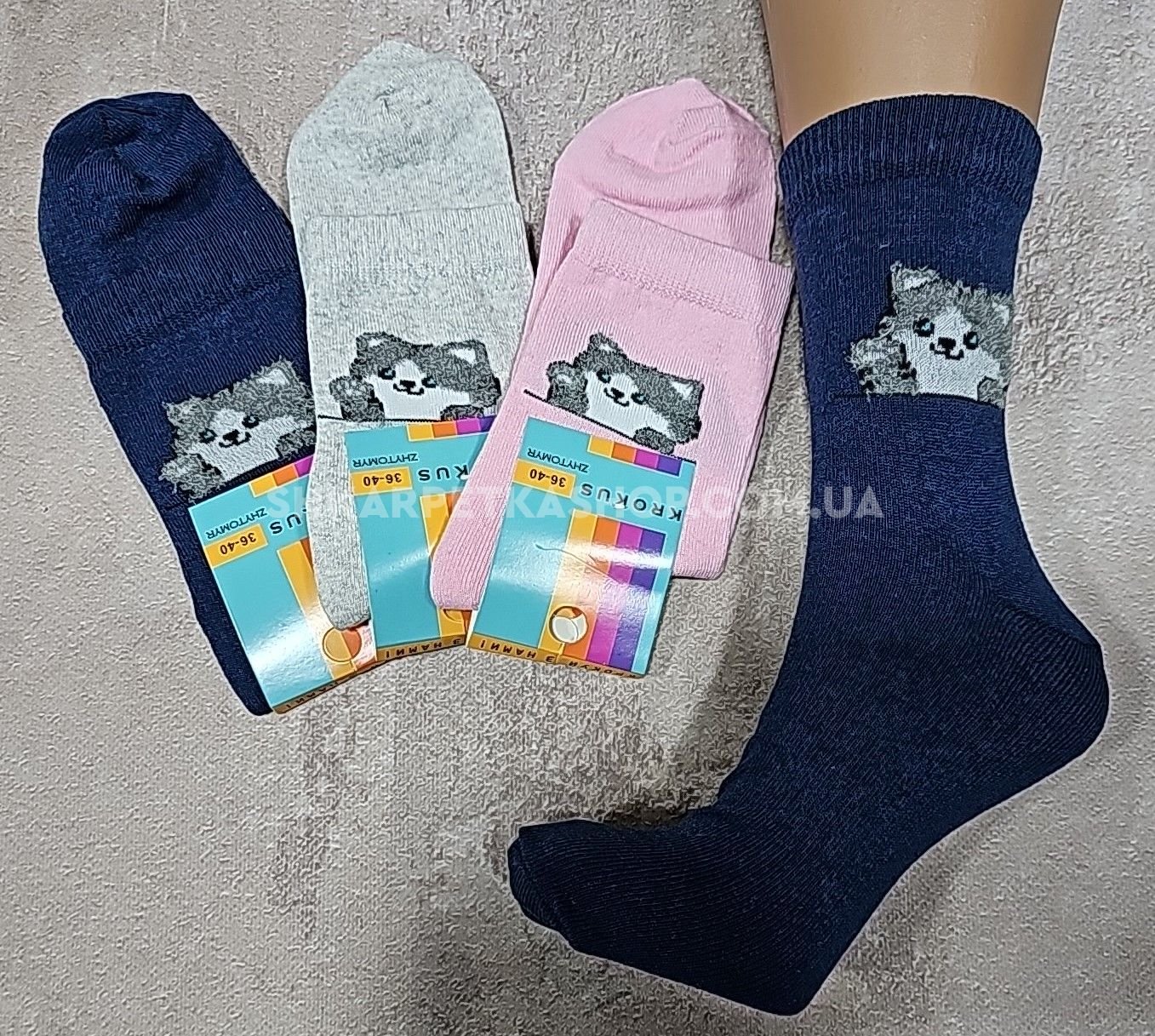 Шкарпетки Житомир "Krokus" 774-6 економ/стрейч жіночі, р. 36-40 -асорті -("економ" високі /однотонні + збоку сірий котик -стрейч) -уп. 12 шт