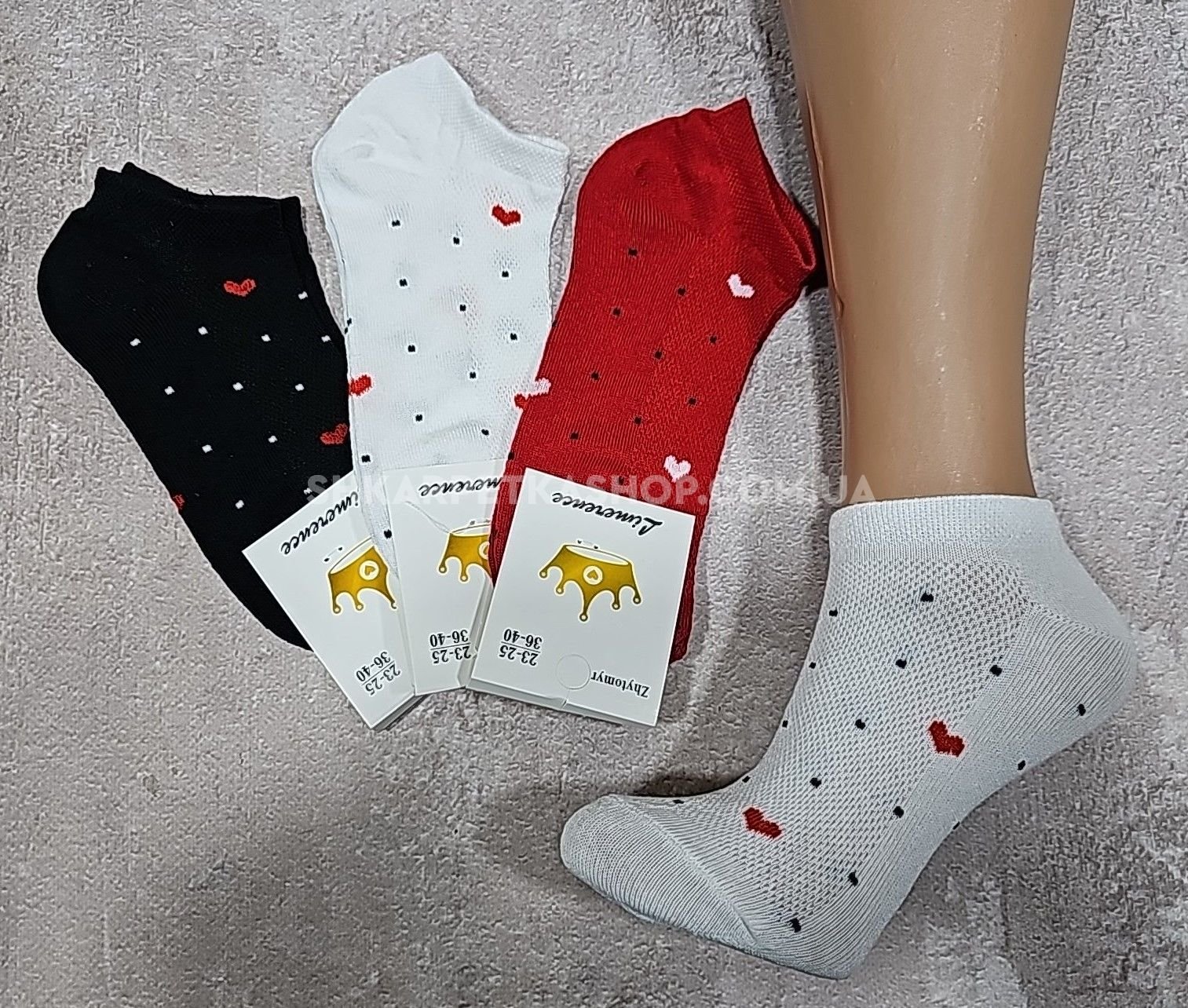Шкарпетки Житомир "Limerence" 03-38 сітка жіночі, короткі р. 36-40 -асорті -(сіточка -однотонні +дрібні крапочки +маленькі серця -економ) -уп. 12 шт