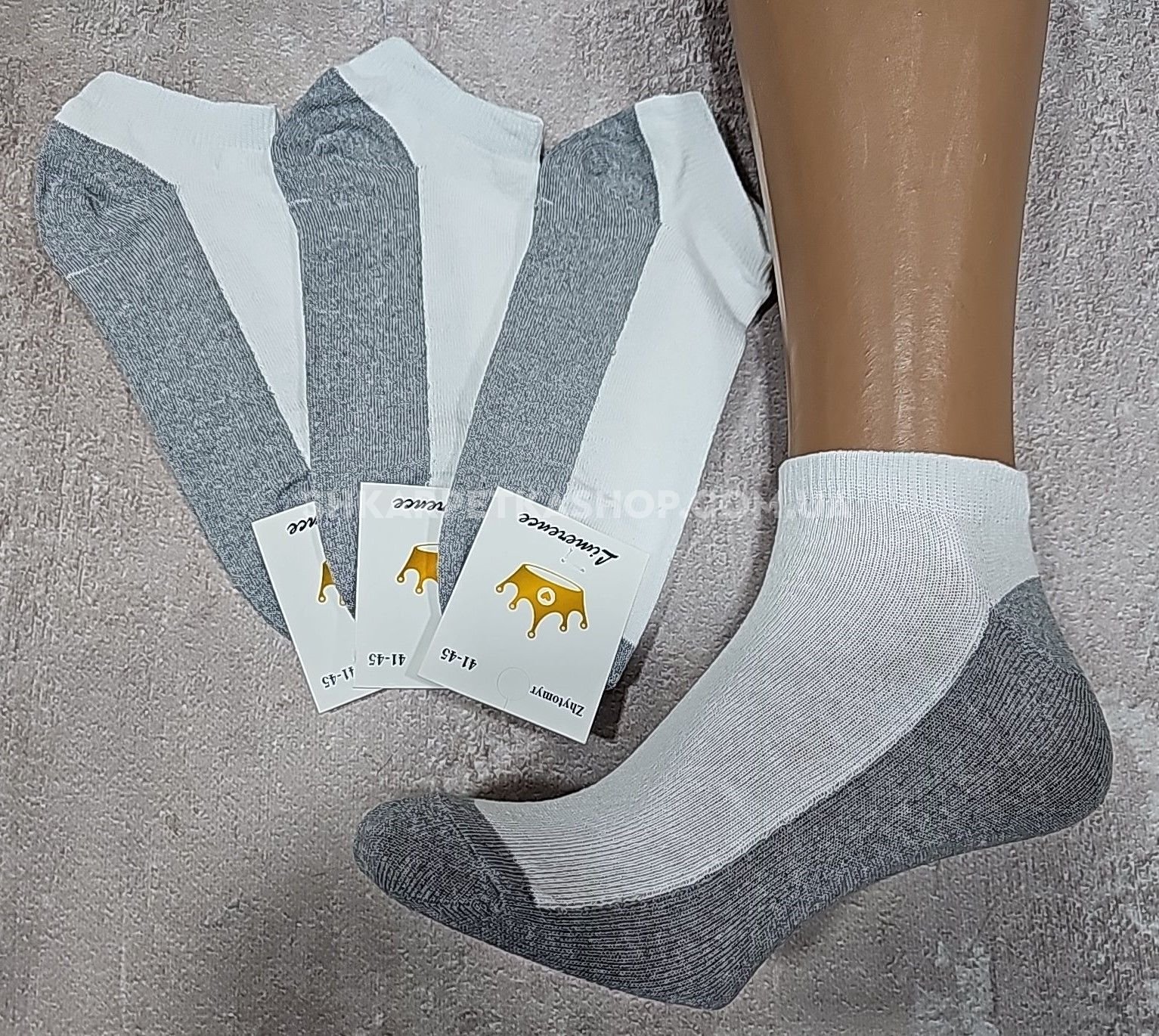 Шкарпетки Житомир "Limerence" 148-4 стрейч чоловічі, р. 41-45 -(короткі -сірий низ +білий верх -чол.) -уп. 12 шт