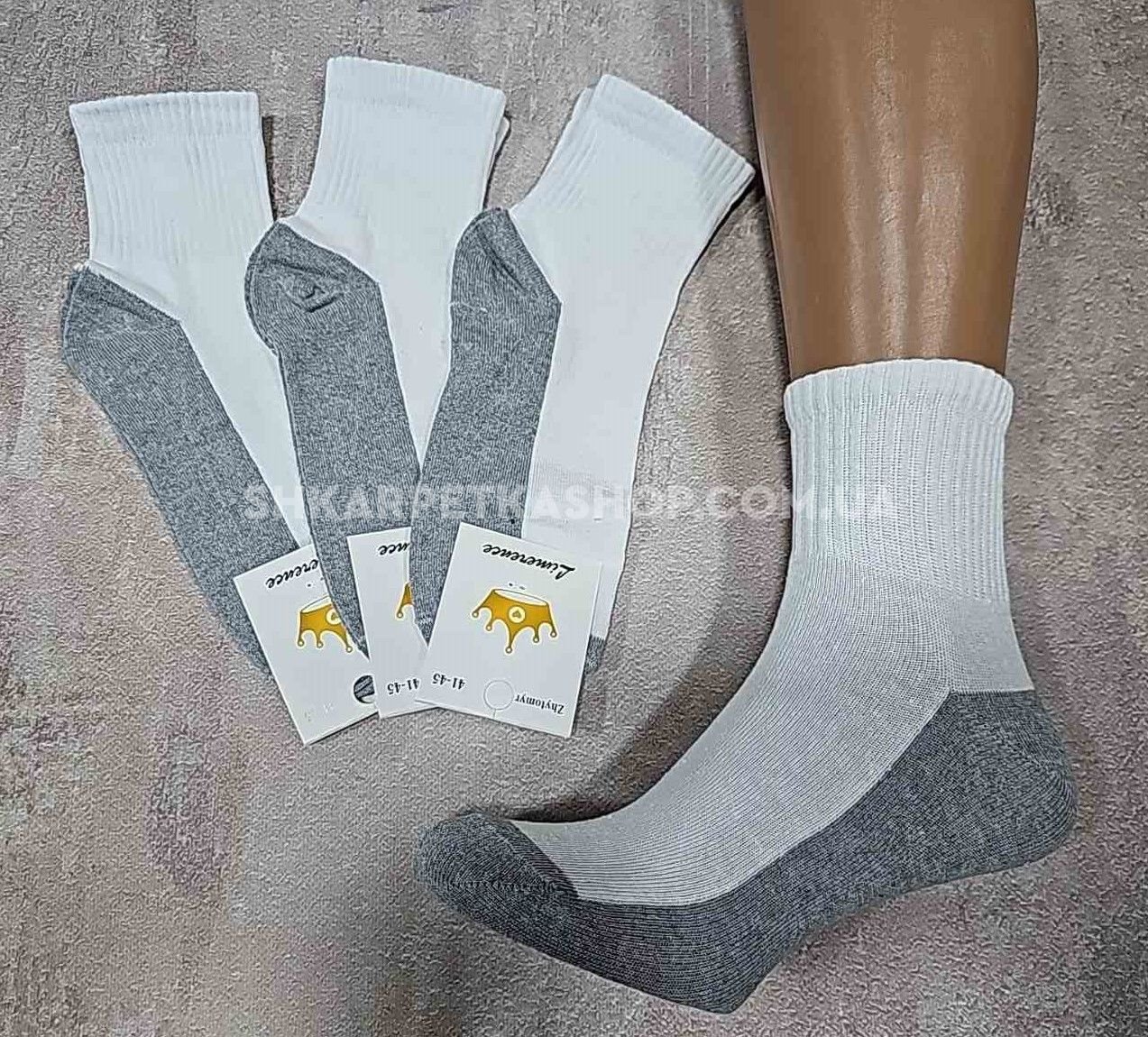Шкарпетки Житомир "Limerence" 158-58 стрейч чоловічі, р. 41-45 -(комбіновані /середні -сірий низ +білий верх +середня гумка в рубчик -чол.) -уп. 12 шт