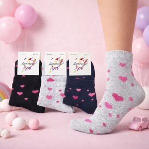 Шкарпетки Житомир "Limerence" 379-09 стрейч дитячі на розмір за довжиною стопи: 20-22, 22-24 -асорті -(дівчинка -рожеві серця по всій шкарпетці -стрейч)