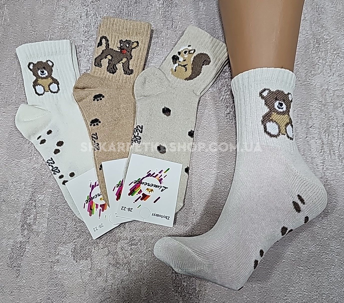 Шкарпетки Житомир "Limerence" 396-12 стрейч дитячі на розмір за довжиною стопи: 16-18, 18-20 -(середні /кавовий мікс +на широкій гумці в рубчик левеня /білка /ведмежа -стрейч) -уп. 12 шт