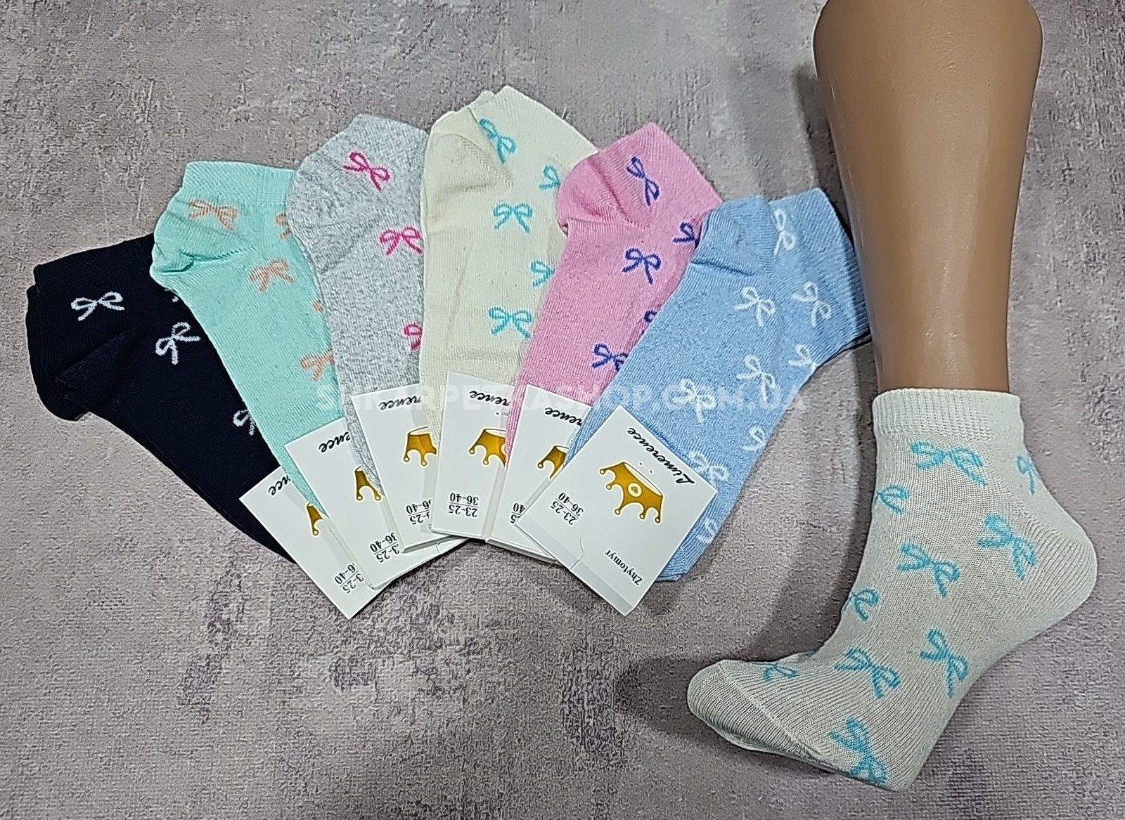 Шкарпетки Житомир "Limerence" 400-60 стрейч жін. (короткі) р. 36-40 -асорті -(Однотонні + дрібні бантики по всій шкарпетці -короткі -стрейч)