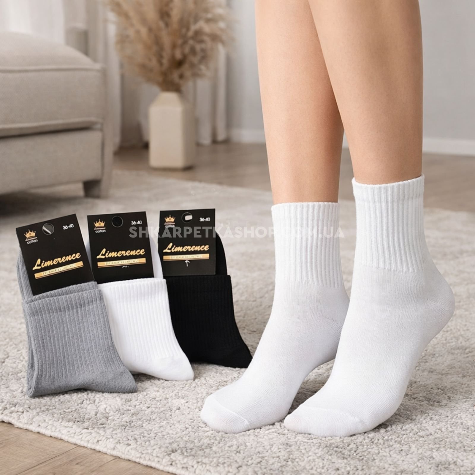 Шкарпетки Житомир "LIMERENCE LUX" 680-80 cotton /стрейч жіночі (Узбецька бавовна), р. 36-40 -асорті -(Теніс -середні LUX /однотонні з гумкою в рубчик -сірі /білі /чорні -жін.)