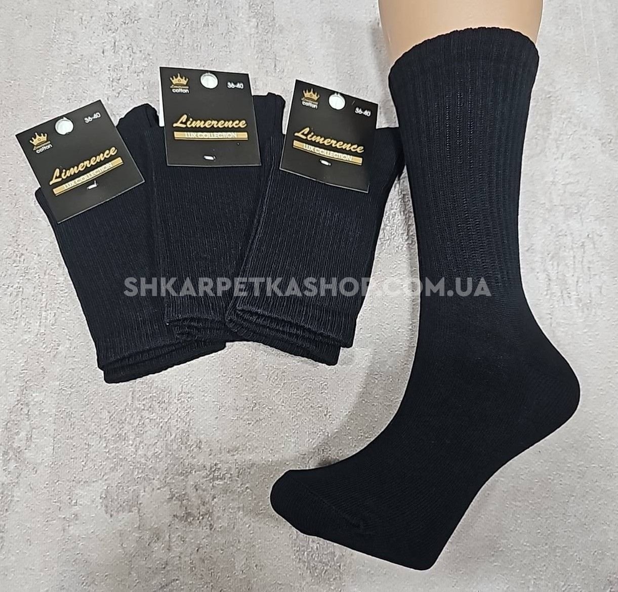 Шкарпетки Житомир "LIMERENCE LUX" 690-90 cotton /стрейч "Теніс" жіночі (Узбецька бавовна), р. 36-40 -асорті -(Тені -LUX -чорні -жін.)