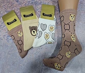 Шкарпетки Житомир "Master" 208-18 безшовні стрейч жіночі, р. 23-25 асорті - (Високі /кавовий мікс +мікс візерунків з мордочками ведмедів на високій гумці в рубчик) -уп. 12 шт
