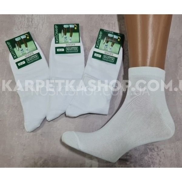 Шкарпетки Житомир "Мaster" 618-2 стрейч /cotton чоловічі "Спорт-середні-гладь" р. 25-27, 27-29 - (білі /середні -гладь) -уп. 12 шт