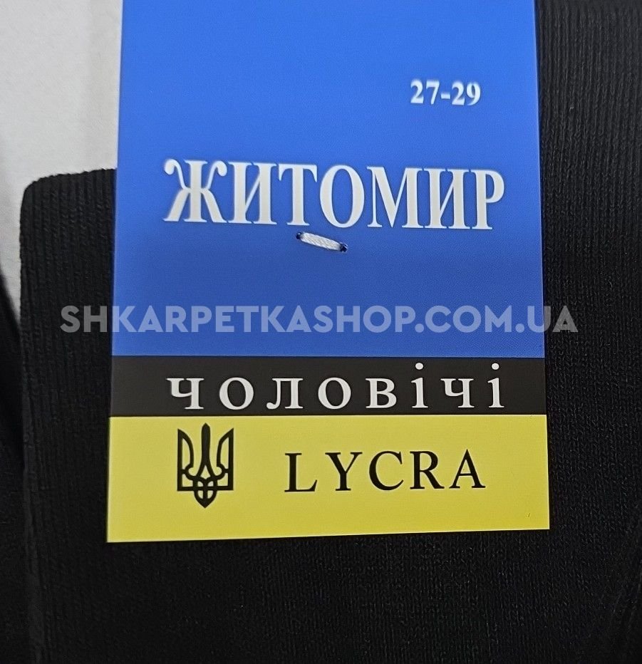 Шкарпетки Житомир "П.П. Красота-LYCRA" 117-007 стрейч чоловічі (синьо-жовта етикетка), р. 27-29 -(високі -чорні /класика) -уп. 12 шт