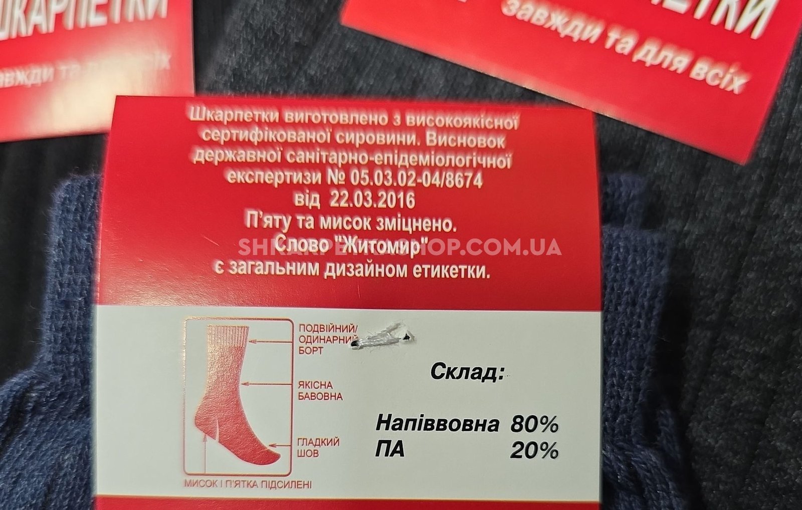 Шкарпетки Житомир "П.П. Красота П/Ш Осінь-Зима" 228-2 напіввовна /бавовна чоловічі (червона етикетка) р. 29-31 -(асорті -п/ш у рубчик) -уп. 12 шт