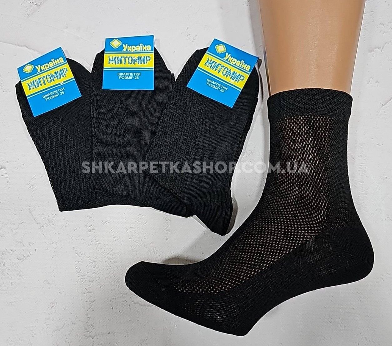 Шкарпетки Житомир "Преміум" 01-164 сітка-х/б -класична" чоловічі, р. 25, 27, 29 -(чорні "сіточка-х/б"-класика) -12 шт.