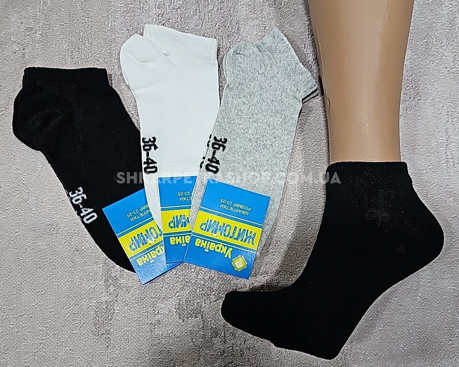 Шкарпетки "Житомир Преміум" 112-37 стрейч жін, р. 36-40 -асорті -(короткі -сірі /білі /чорні + на підошві вишивка 36-40 -стрейч -жін.) -уп. 12 шт