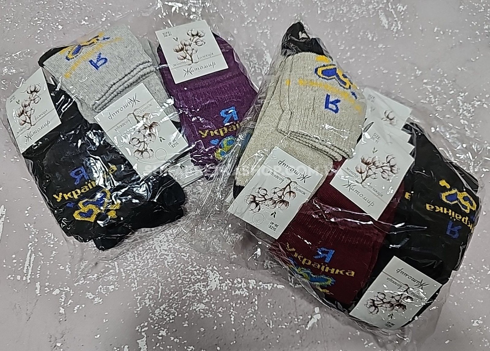 Шкарпетки "Житомир Преміум" 112-57 стрейч жіночі, р. 36-41 -випадкове асорті -(Однотонні +збоку напис "Я Українка" + серця -стрейч) -уп. 12 шт