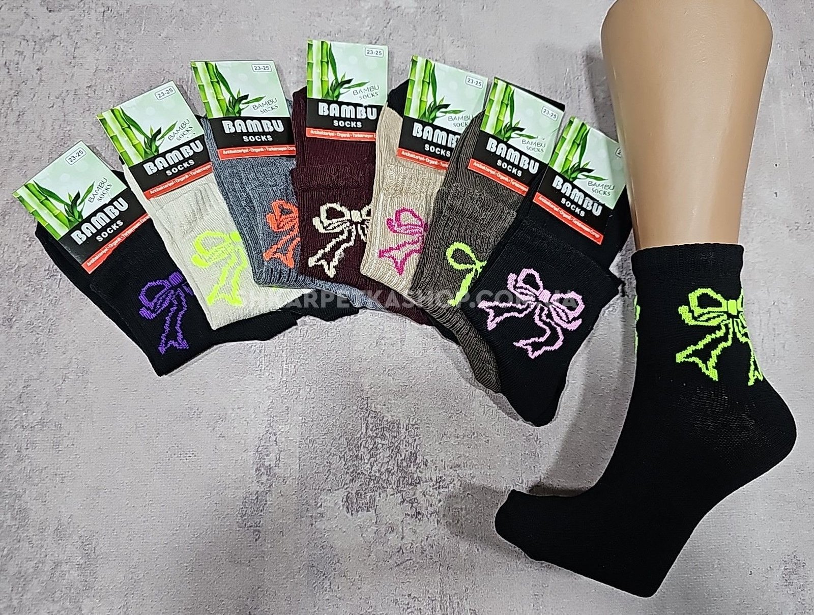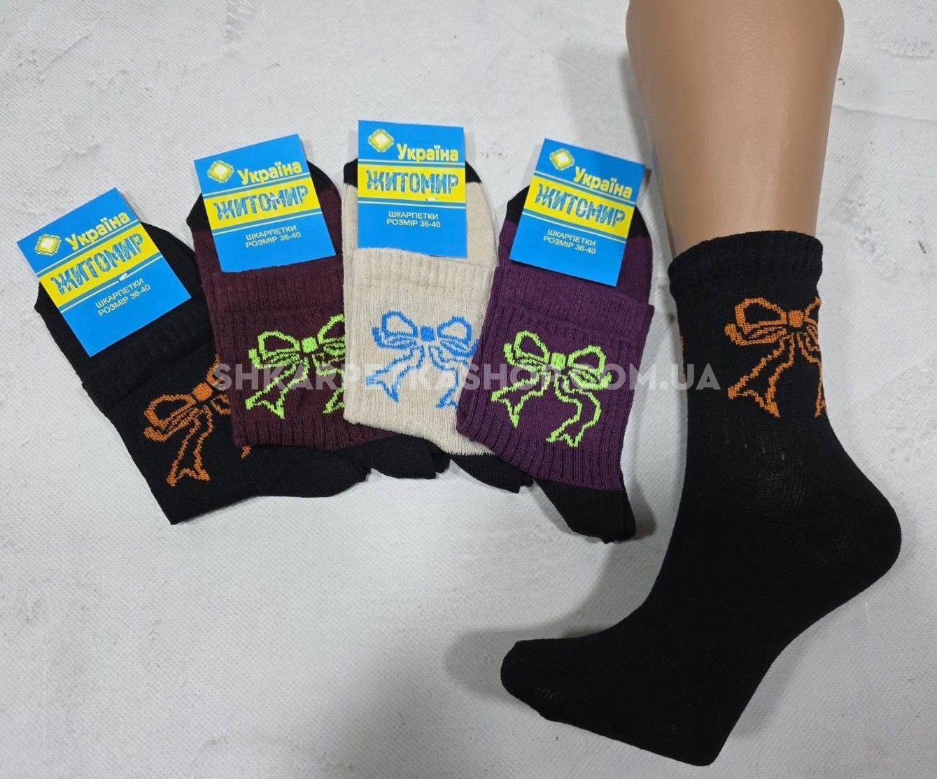 Шкарпетки "Житомир Преміум" 112-64 стрейч жіночі, р. 23-25 -випадкове асорті -(Однотонні +збоку різнокольорові бантики на широкій гумці в рубчик) -уп. 12 шт