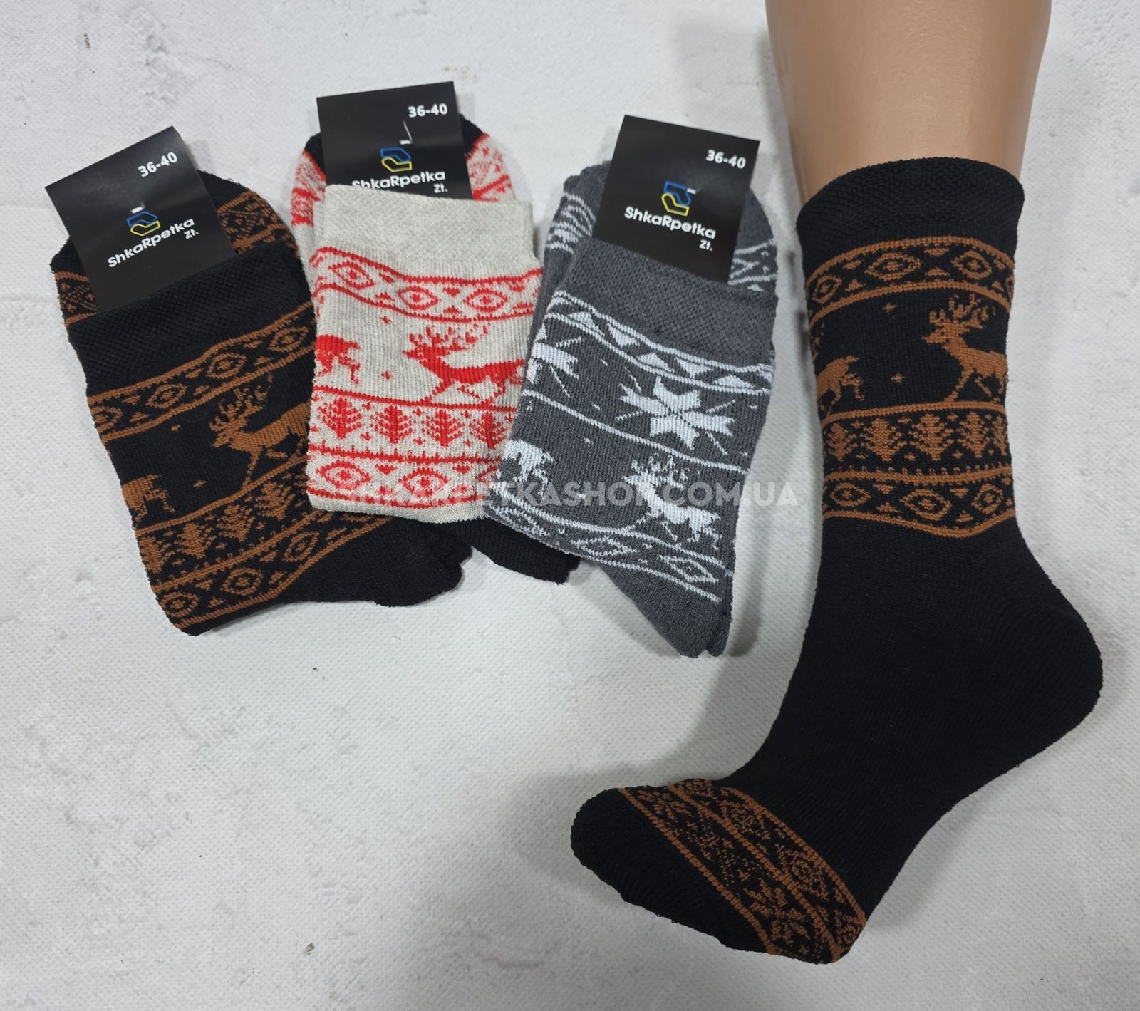 Шкарпетки Житомир "Shkarpetka" 6063-80 махрові жіночі р. 36-40 -асорті -(Махра -з широкою вставкою з мікс орнаментом та оленями) -уп. 12 шт