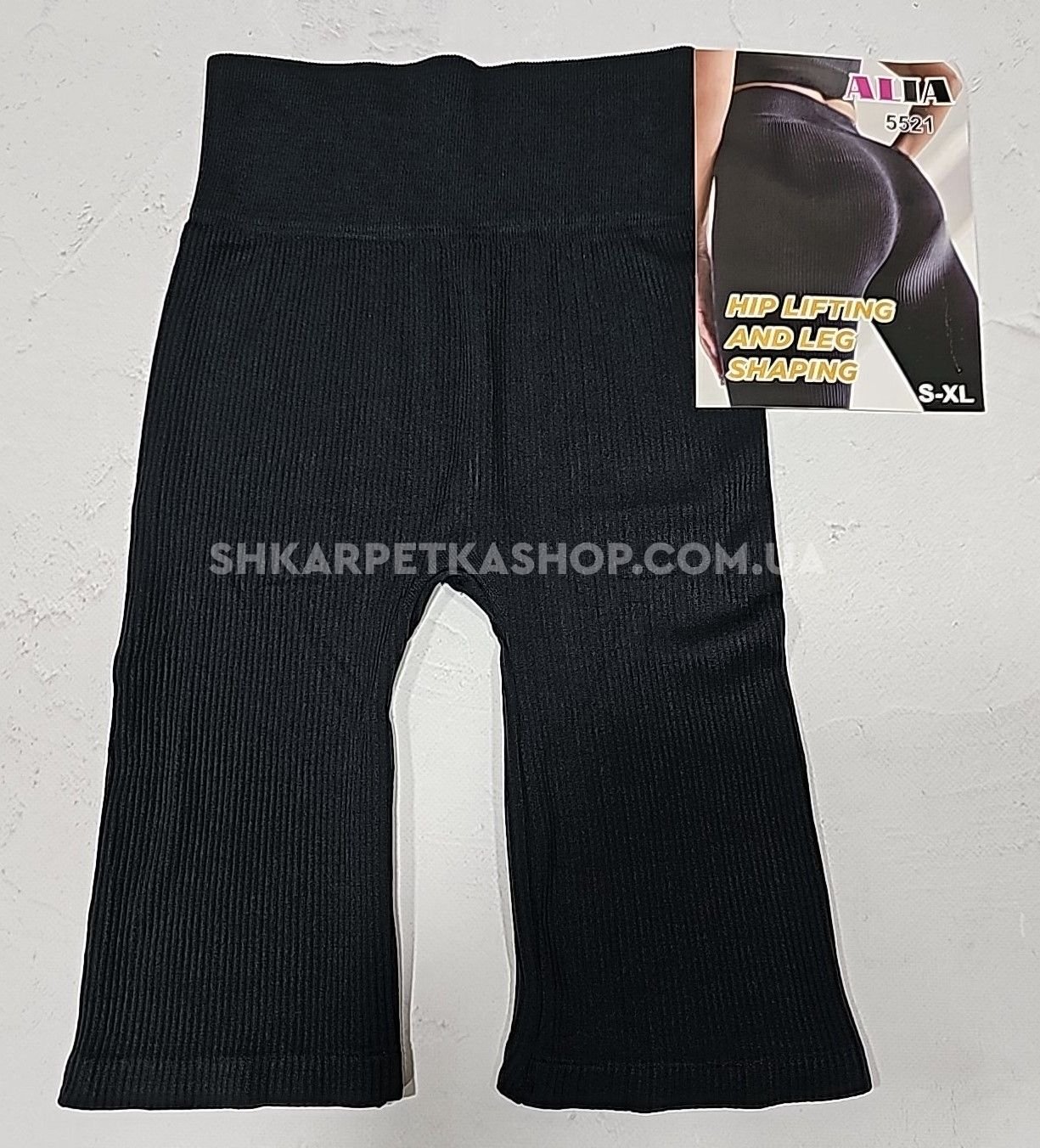 Треки /велосипедки "Алія" 5521 безшовні в рубчик +широкий пояс, р. S-XL-(44-48) -(чорні)