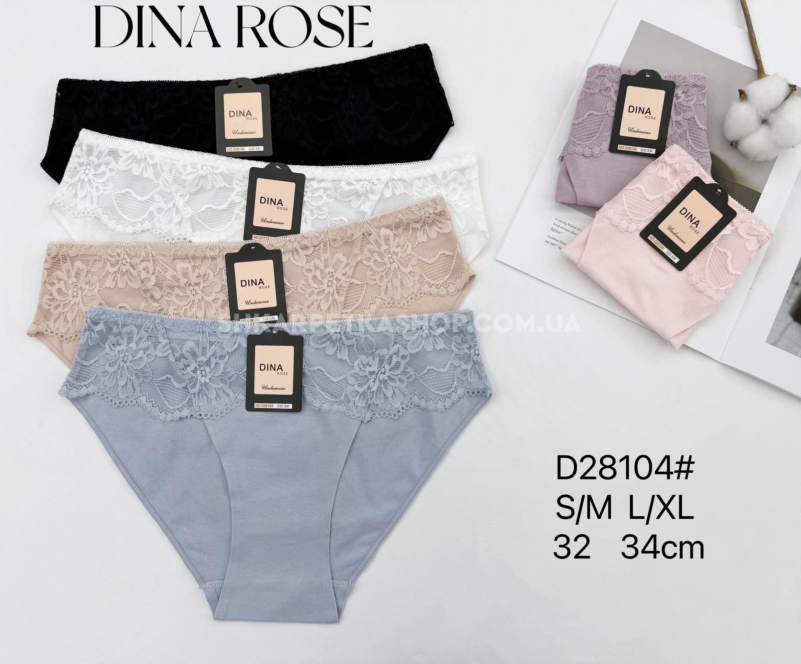 Жіночі труси "DINA Rose" 28104 бавовняні, р. S/M, L/XL -(46-48, 48-50) -асорті -(однотонні +під гумкою мереживо) -уп. 12 шт