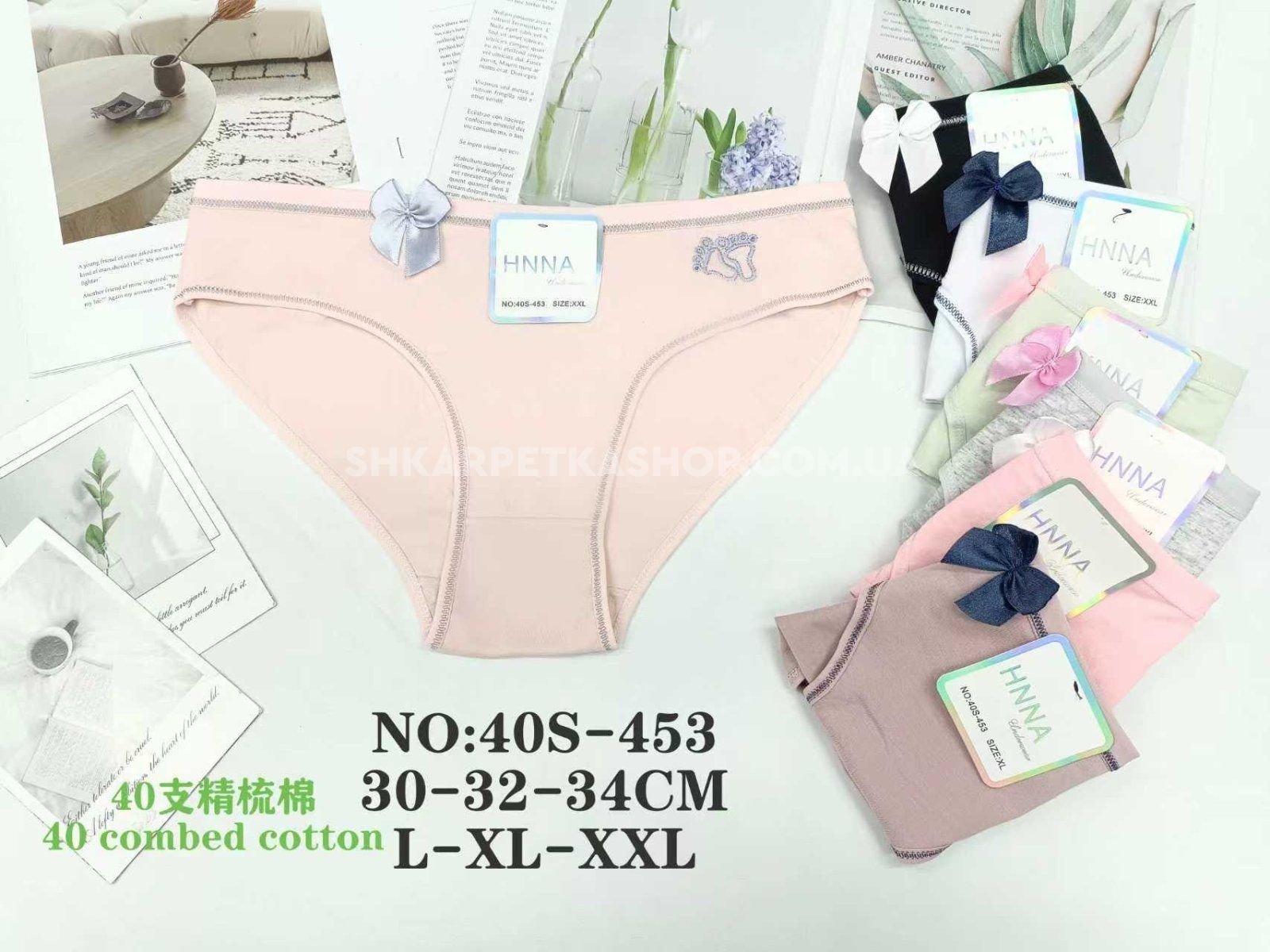 Жіночі труси "HNNA" 40-S-453 cotton, р. L, xl, 2xl -(44-46, 46-48, 48-50) -асорті -(Однотонні +збоку лапки +обідок по ніжці) -уп. 12 шт