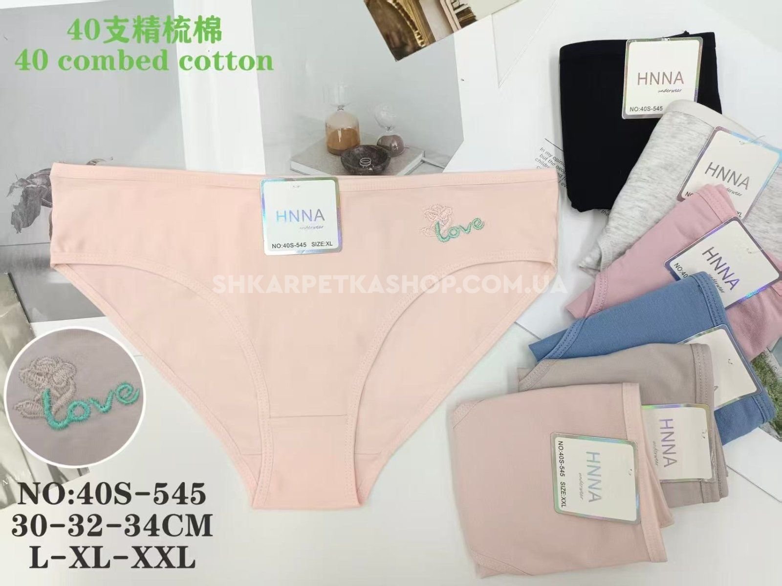 Жіночі труси "HNNA" 40-S-545 cotton, р. L, xl, 2xl -(44, 46, 48) -асорті -(Однотонні +збоку вишивка Love +маленька квіточка) -уп. 12 шт