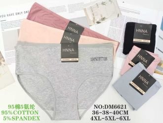 Жіночі труси "HNNA" DM-6621 cotton, р. 4XL, 5XL, 6XL -(50-52, 52-54, 54-56) -асорті -(Однотонні /гладкі +збоку напис "100% cotton") -уп. 12 шт