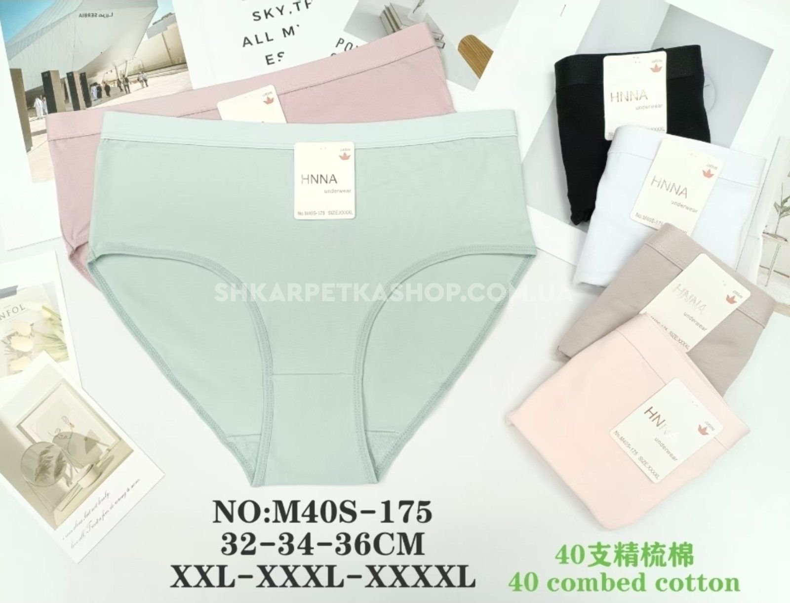 Жіночі труси "HNNA" New M-40-S-175 cotton, р. 2XL, 3XL, 4XL -(48, 50, 52) -асорті -(Однотонні) -уп. 12 шт
