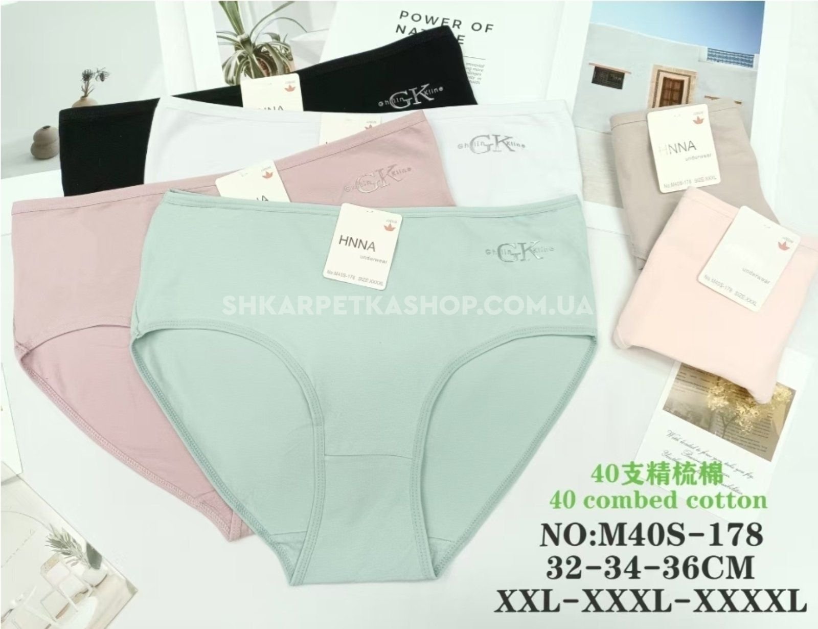 Жіночі труси "HNNA" New M-40-S-178 cotton, р. 2XL, 3XL, 4XL -(48, 50, 52) -асорті -(Однотонні) -уп. 12 шт