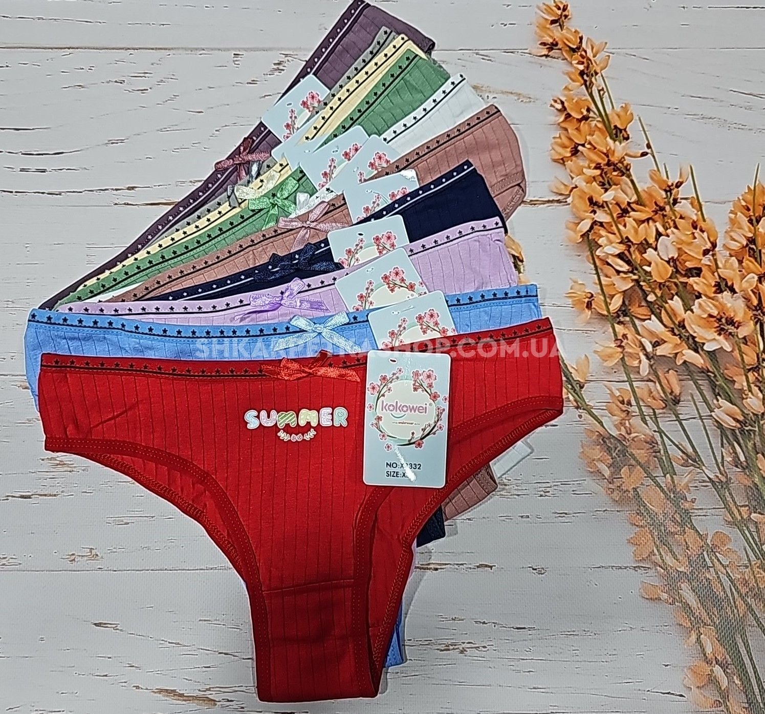 Жіночі труси "Kokowei" 2332 бавовна, р. l, xl, 2xl -(42-44, 44-46, 46-48) -асорті -(однотонні в широкий рубчик + спереду напис Summer) -уп. 12 шт