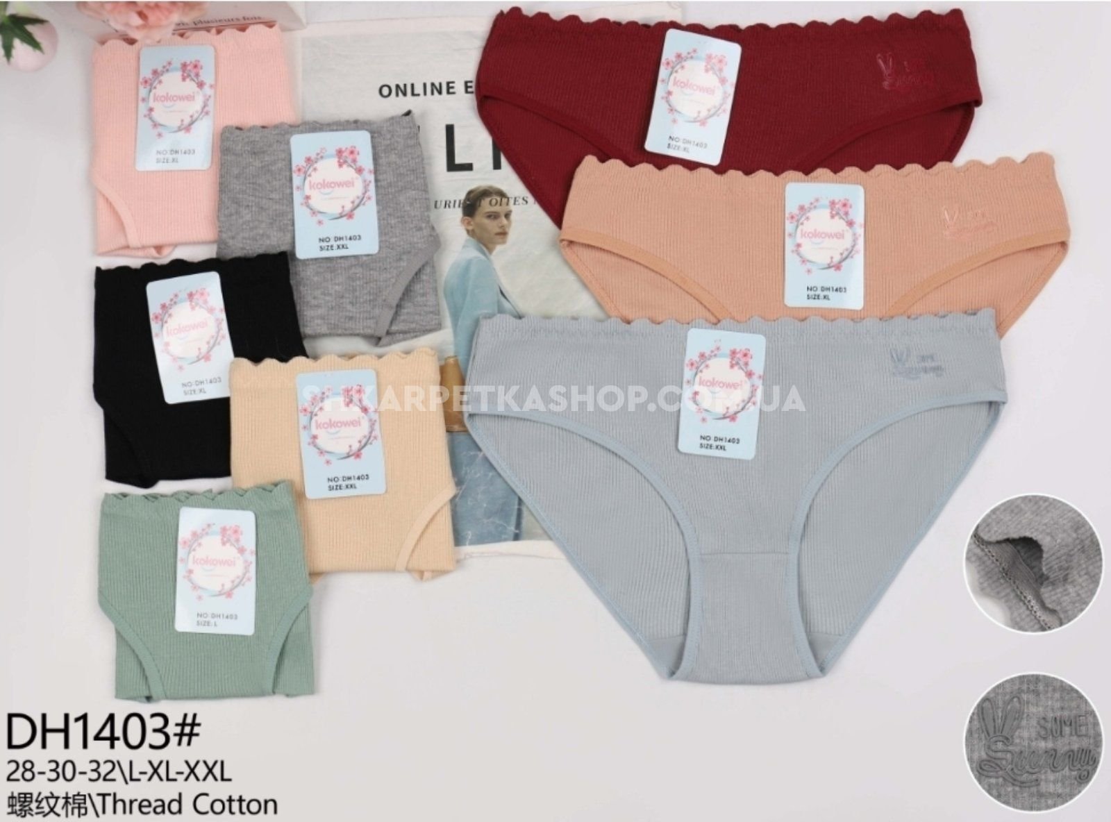 Жіночі труси "Kokowei" New DH-1403 cotton, р. L, XL, 2XL -(42-44, 44-46, 46-48) -асорті -(Однотонні в рубчик) -уп. 12 шт