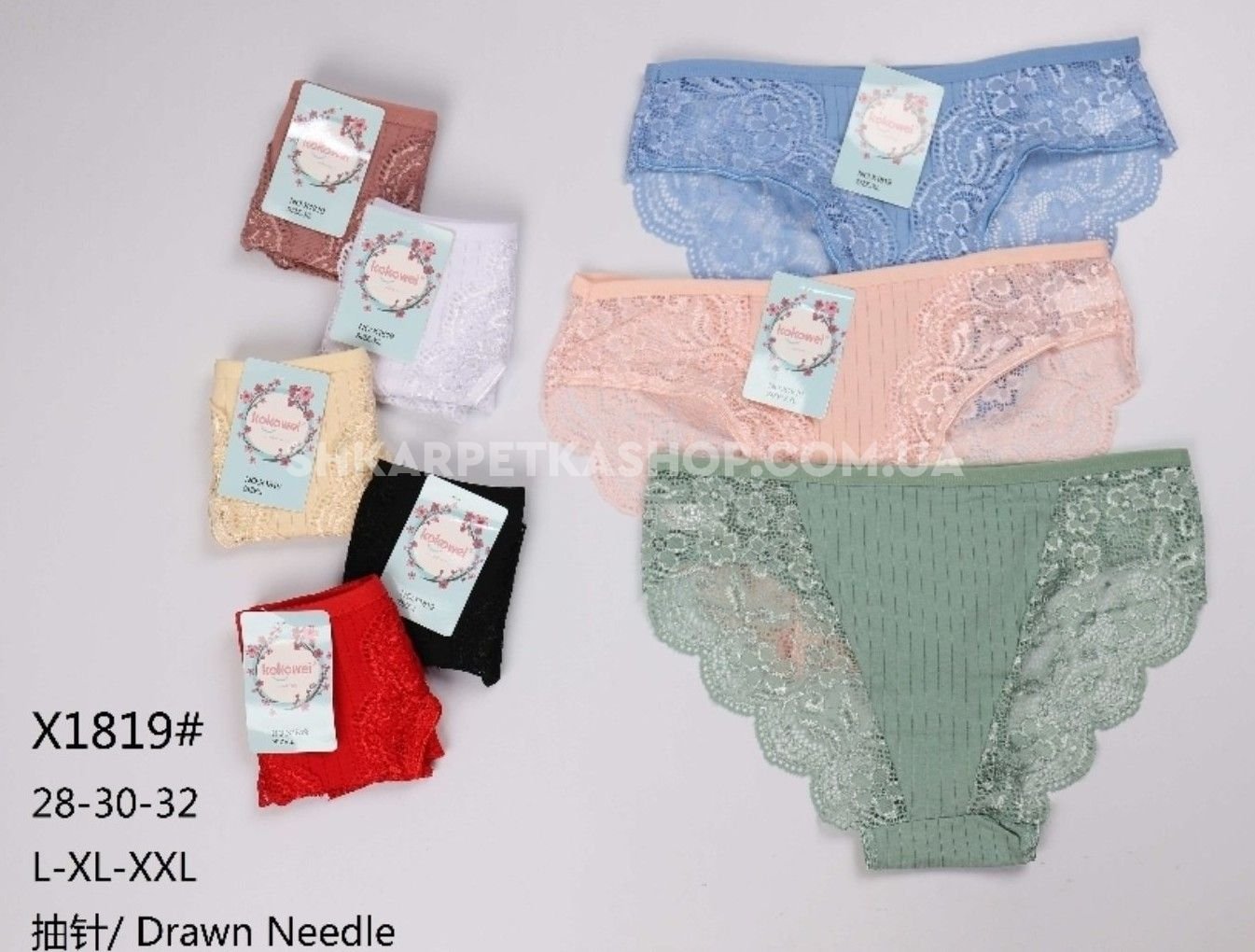 Жіночі труси "Kokowei" New Х-1819 cotton, р. L, XL, 2XL -(42-44, 44-46, 46-48) -асорті -(Однотонні в рубчик з мереживом) -уп. 12 шт