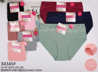 Жіночі труси "Kokowei" New Х-4345 cotton, р. ХL, 2XL, 3XL -(48, 50, 52) -асорті -(Однотонні з мереживом) -уп. 12 шт