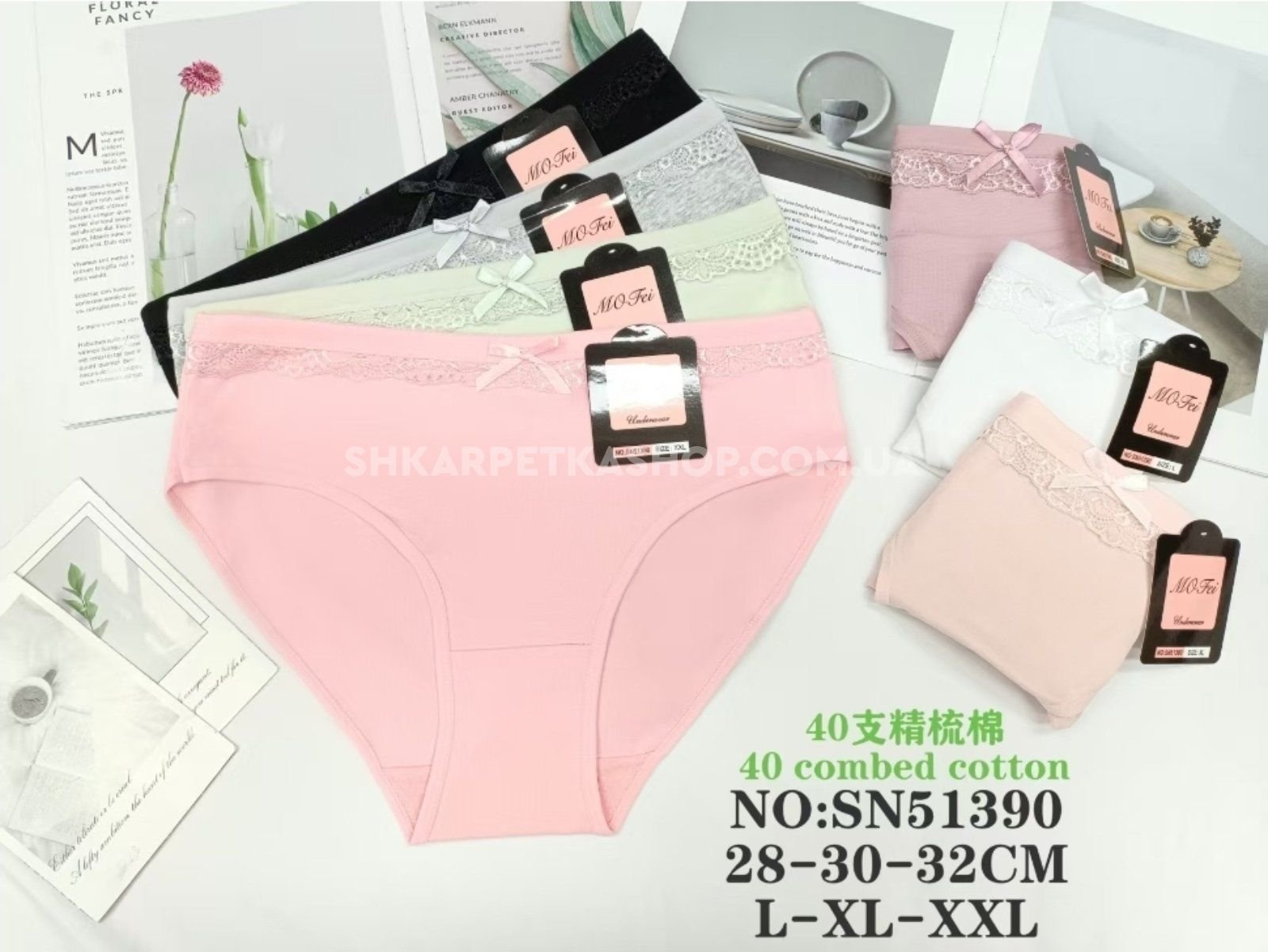 Жіночі труси "MO Fei" New SN-51390 cotton, р. L, XL, 2XL -(44, 46, 48) -асорті -(Однотонні ) -уп. 12 шт