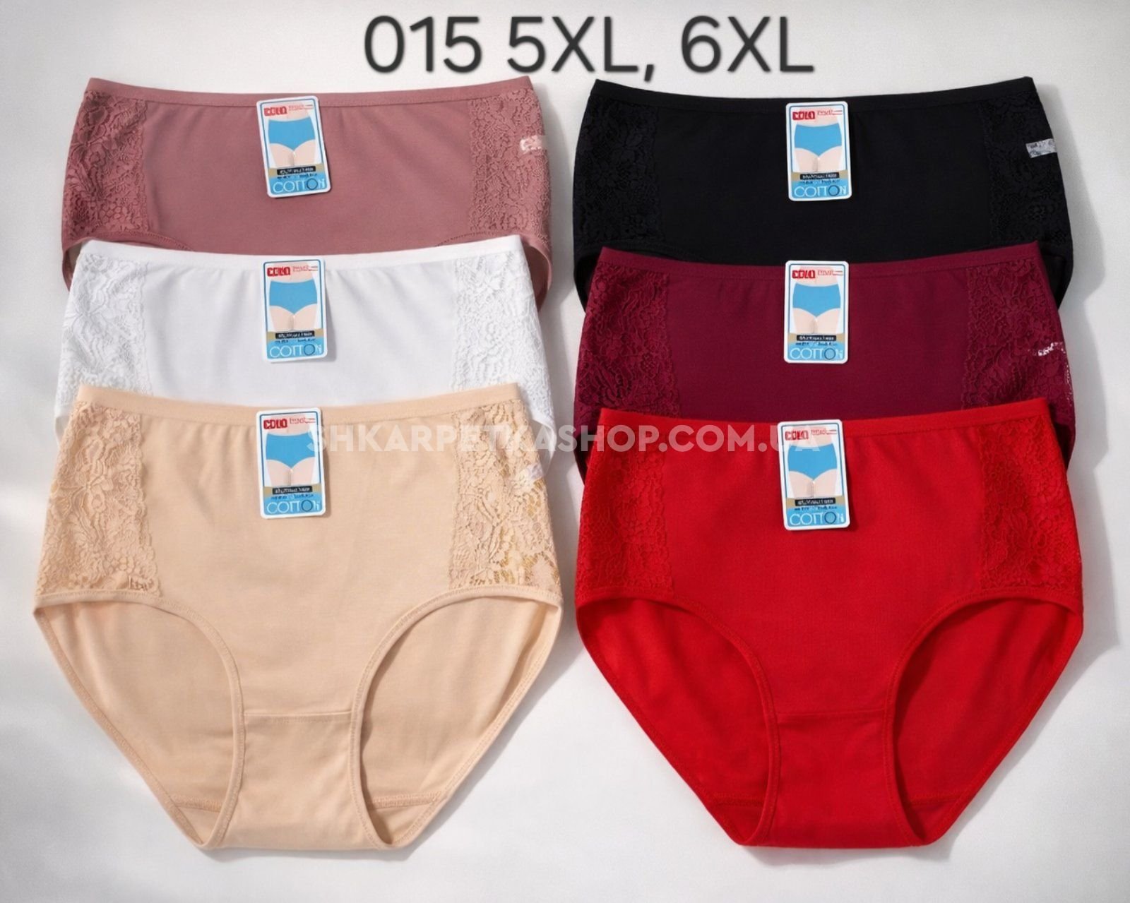 Жіночі труси "Sola Cotton" 015 cotton, р. 5ХL, 6xl -(52-54, 54-56) -асорті -(Однотонні +з боків мереживні вставки) -уп. 12 шт