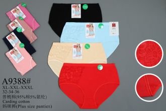 Жіночі труси "UOKIN" А9388 cotton, р. ХL, 2xl, 3xl -(48-50, 50-52, 52-54) -асорті -(Однотонні +спереду з одного боку мереживо) -уп. 12 шт