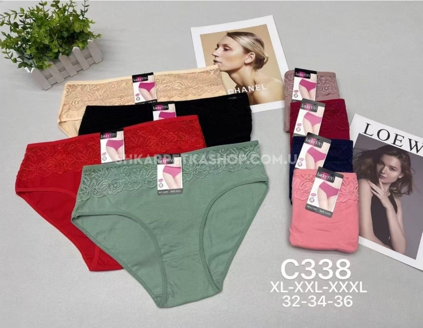 Жіночі труси "YIYI LUCKY" New С-338 cotton, р. XL, 2XL, 3XL -(48, 50, 52) -асорті -(Однотонні з мереживом) -уп. 12 шт